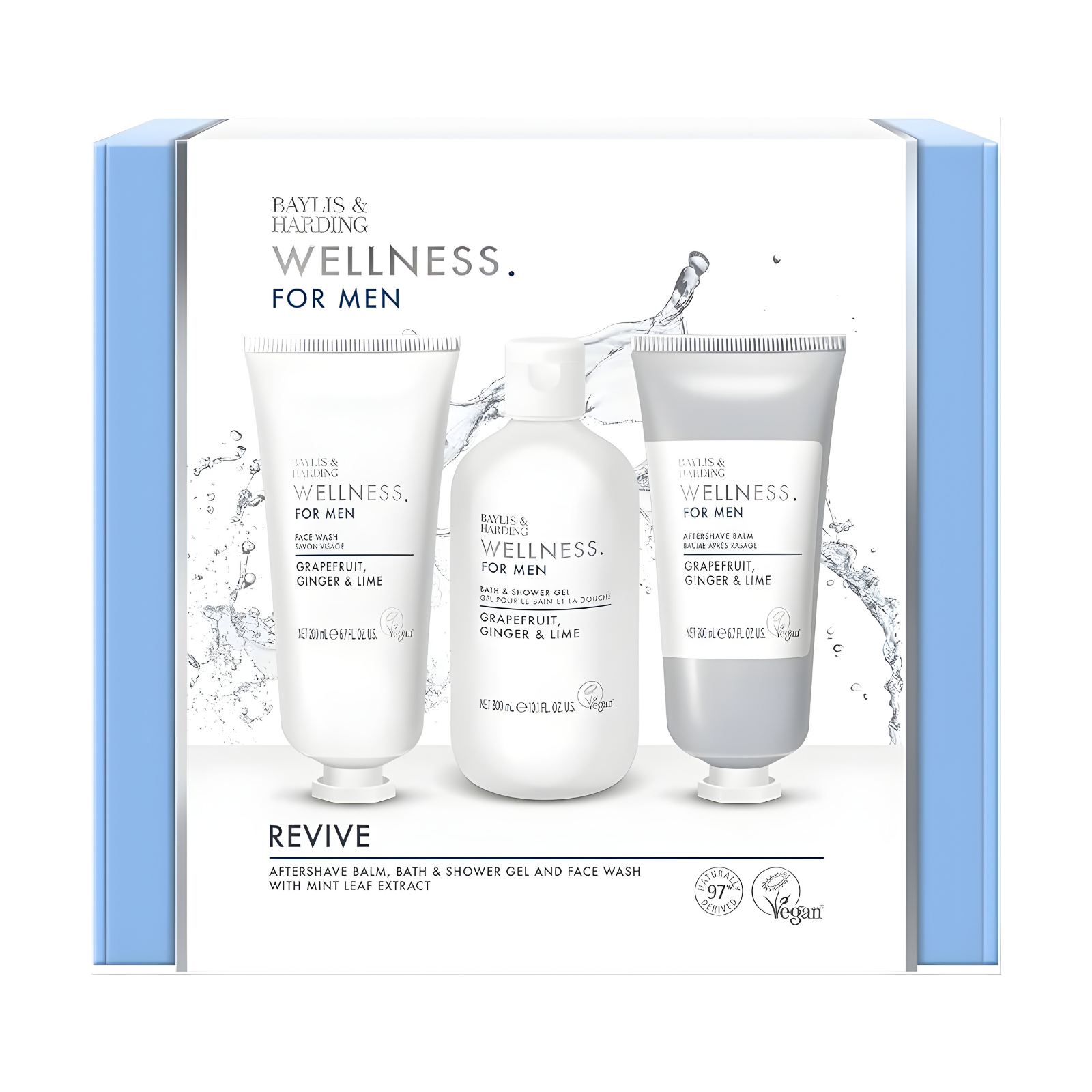 Revive his grooming routine with the Baylis & Harding Wellness for Men Revived & Ready 3-in-1 Gift Set. Featuring an energizing blend of Grapefruit, Ginger, and Lime, this collection is designed to deep cleanse, soothe, and energize the mind and body. Presented in a sleek and simplistic design, it is the perfect practical gift for the modern, stylish man.