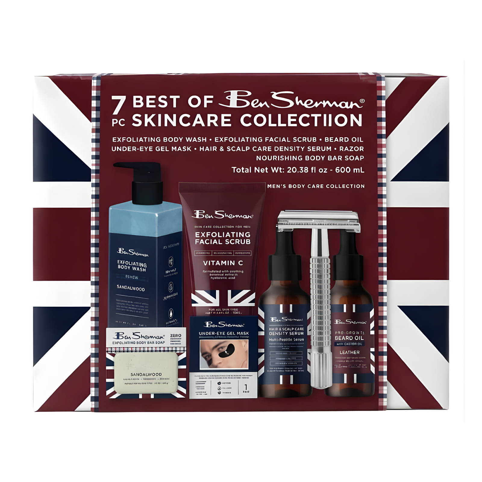 The Ben Sherman “Best of Ben Sherman” 7-Piece Skincare Collection is the ultimate “Signature Pick” for the man who values a comprehensive and sophisticated grooming routine.