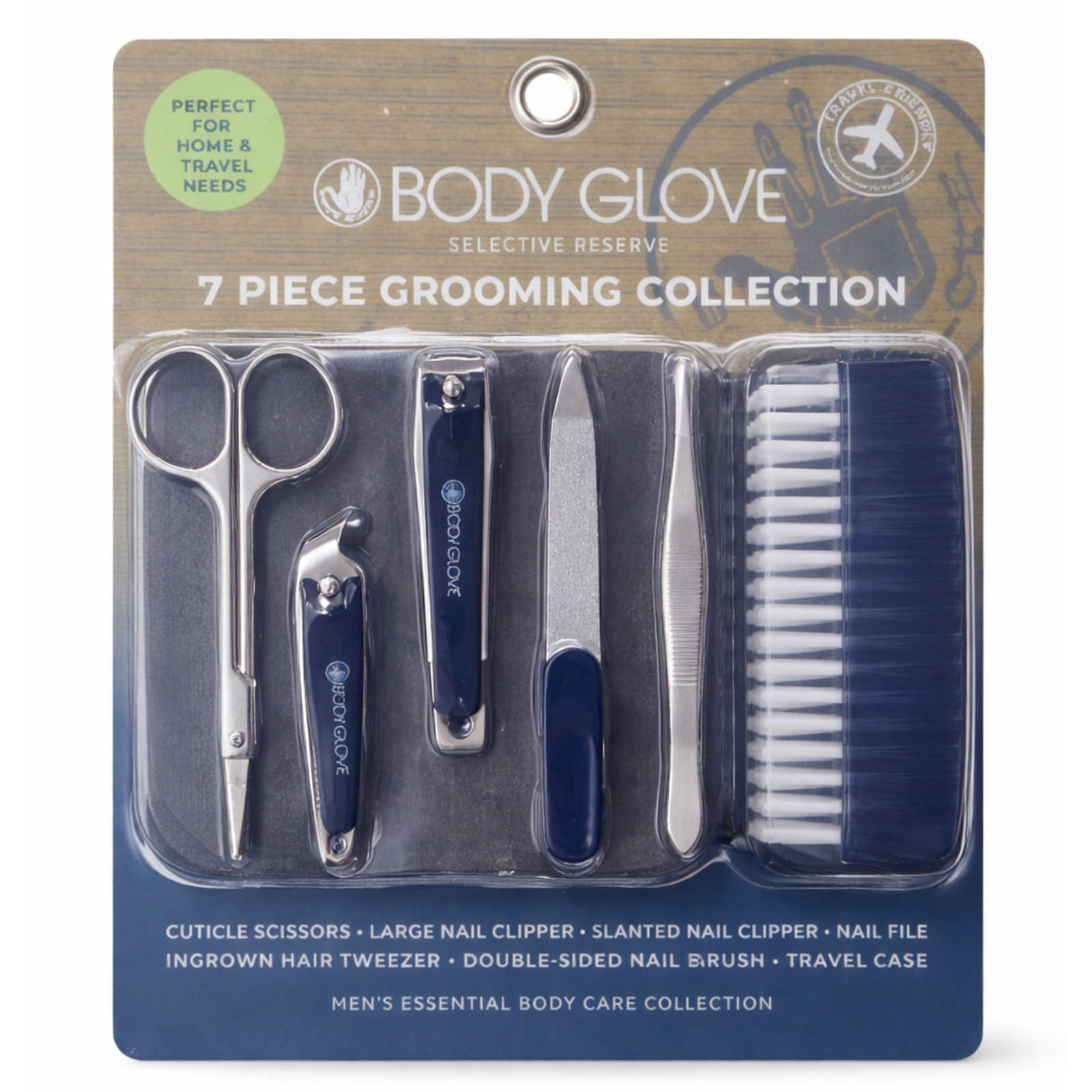 Get a refined look with the Body Glove Deluxe 7pc Grooming Collection. Durable stainless steel tools for precise shaving and skincare. Includes a modern storage case