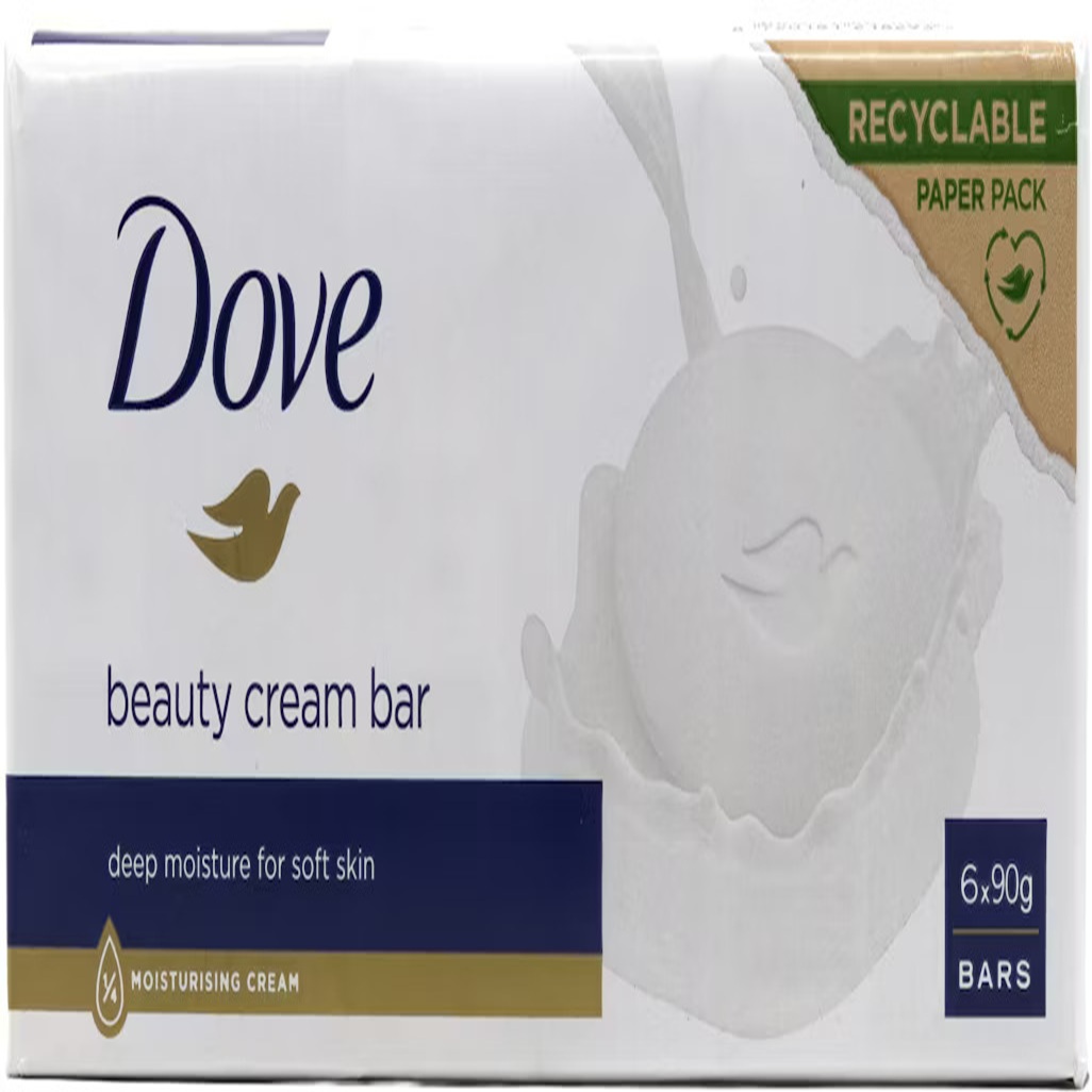 Six bars of Dove cream beauty bar offering mild cleansing with moisturizing benefits