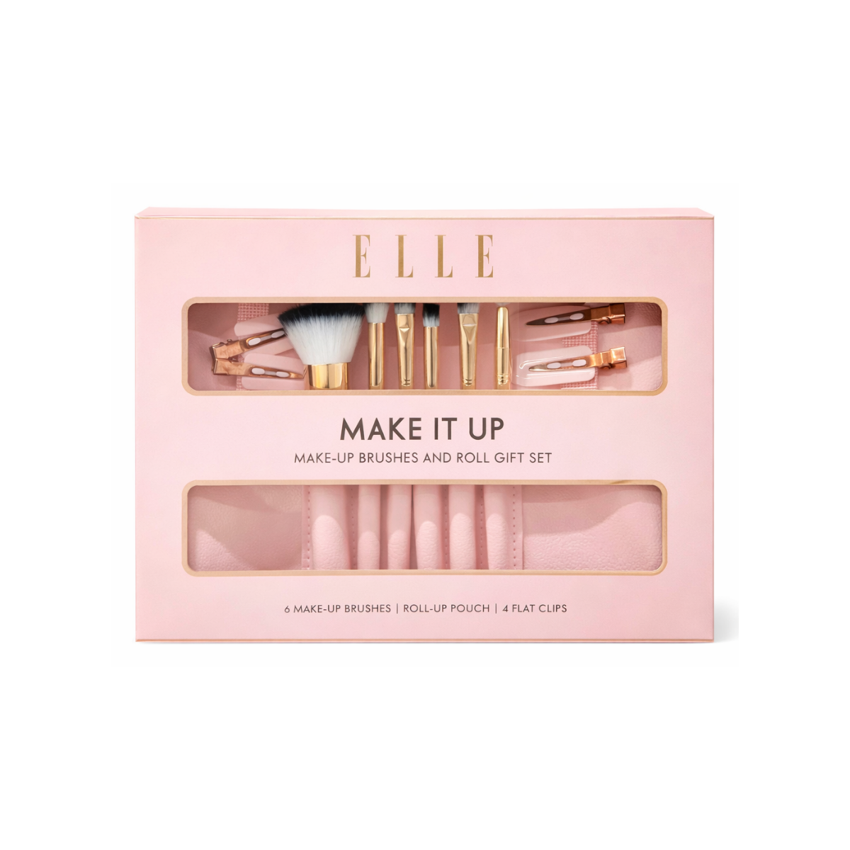 Elle Make it Up-Make Brushes & Roll Gift Set-Pink