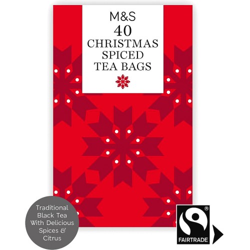 Festive spiced tea bags from Marks & Spencer featuring Christmas-inspired flavors and spices