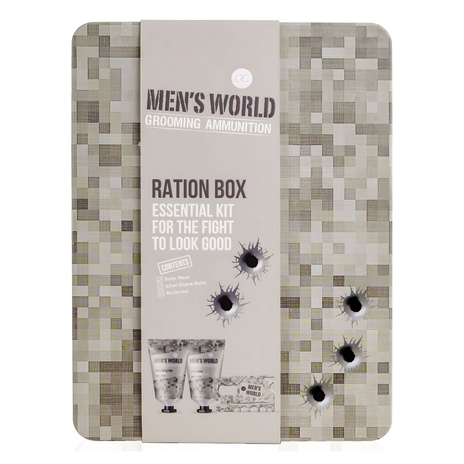 Equip yourself for the daily battle with the Men’s World Grooming Ammunition Ration Box. Designed for the rugged man who refuses to compromise on appearance.
