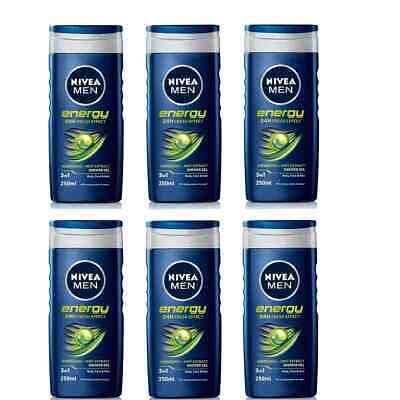 Six bottles of Nivea Men Energy shower gel for daily energizing showers