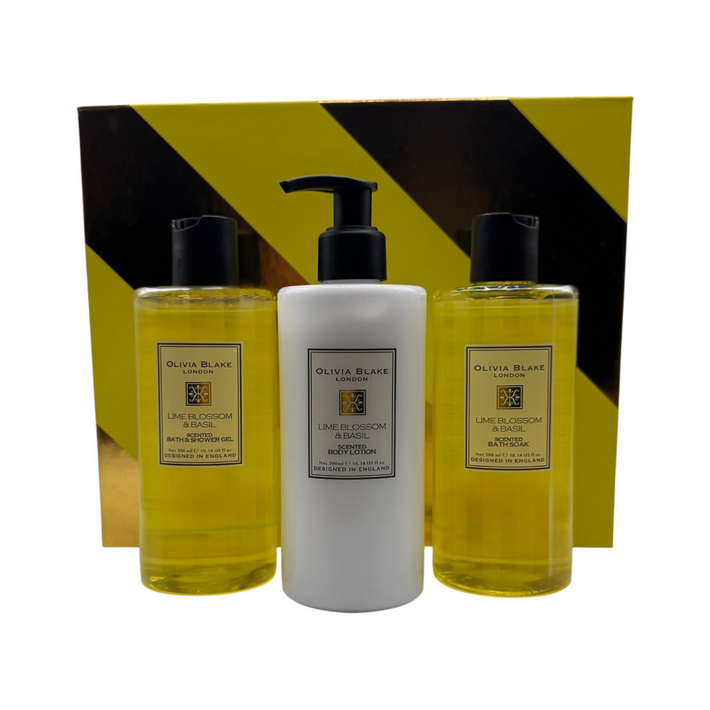 Includes bath & shower gel 300ml, body lotion 300ml, foam bath 300ml.