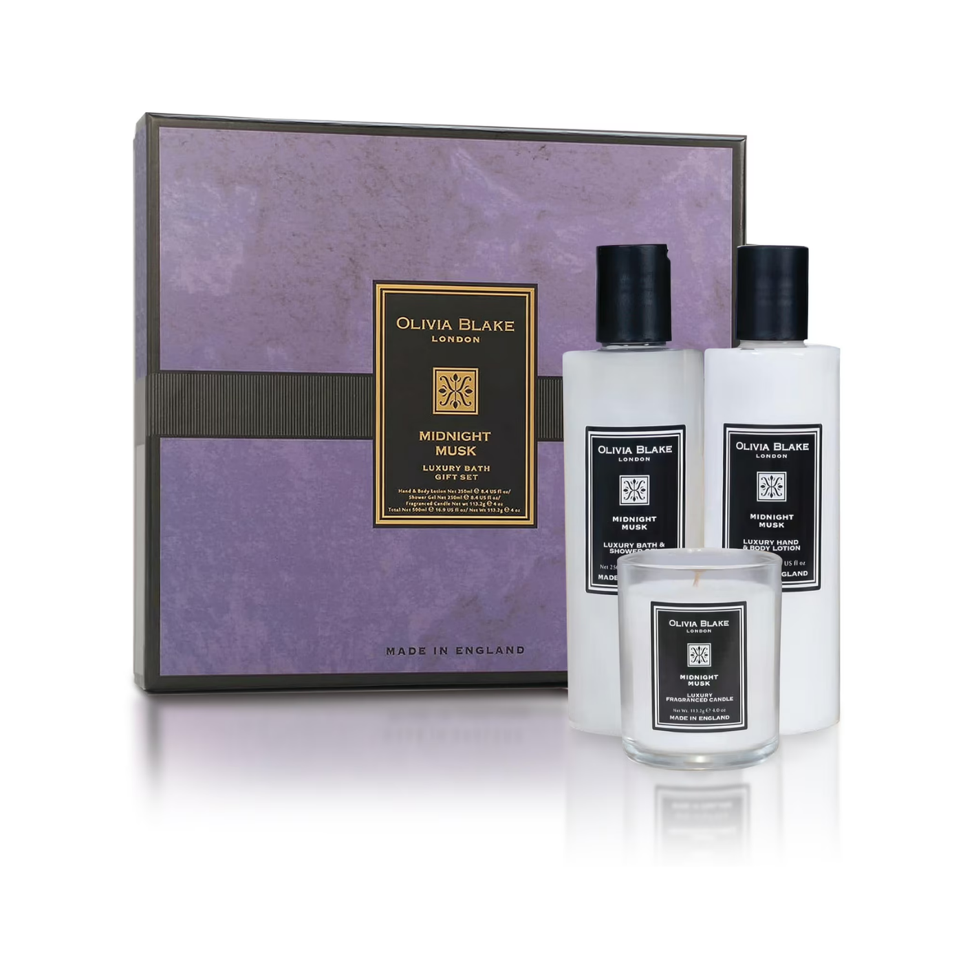 Includes: 250ml shower gel, 250ml body lotion, 1 wick candle