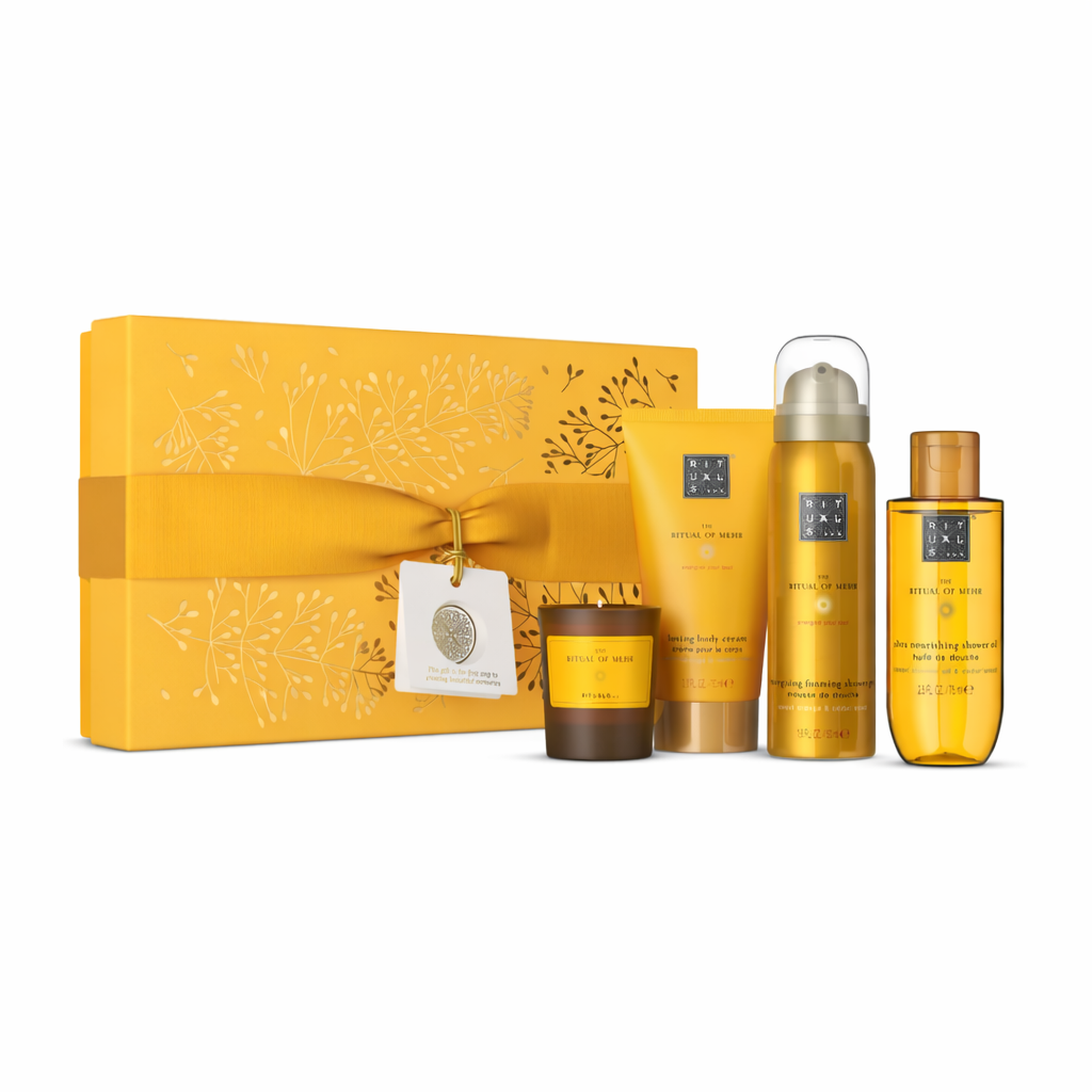 Brighten someone’s day with The Ritual of Mehr Small Gift Set. This curated collection is designed to bring a moment of radiant energy to even the busiest schedule. Perfectly sized for travel or as a graceful introduction to the world of Rituals, it centers on the soul-stirring scent of Sweet Orange and the grounding depth of Cedar Wood.