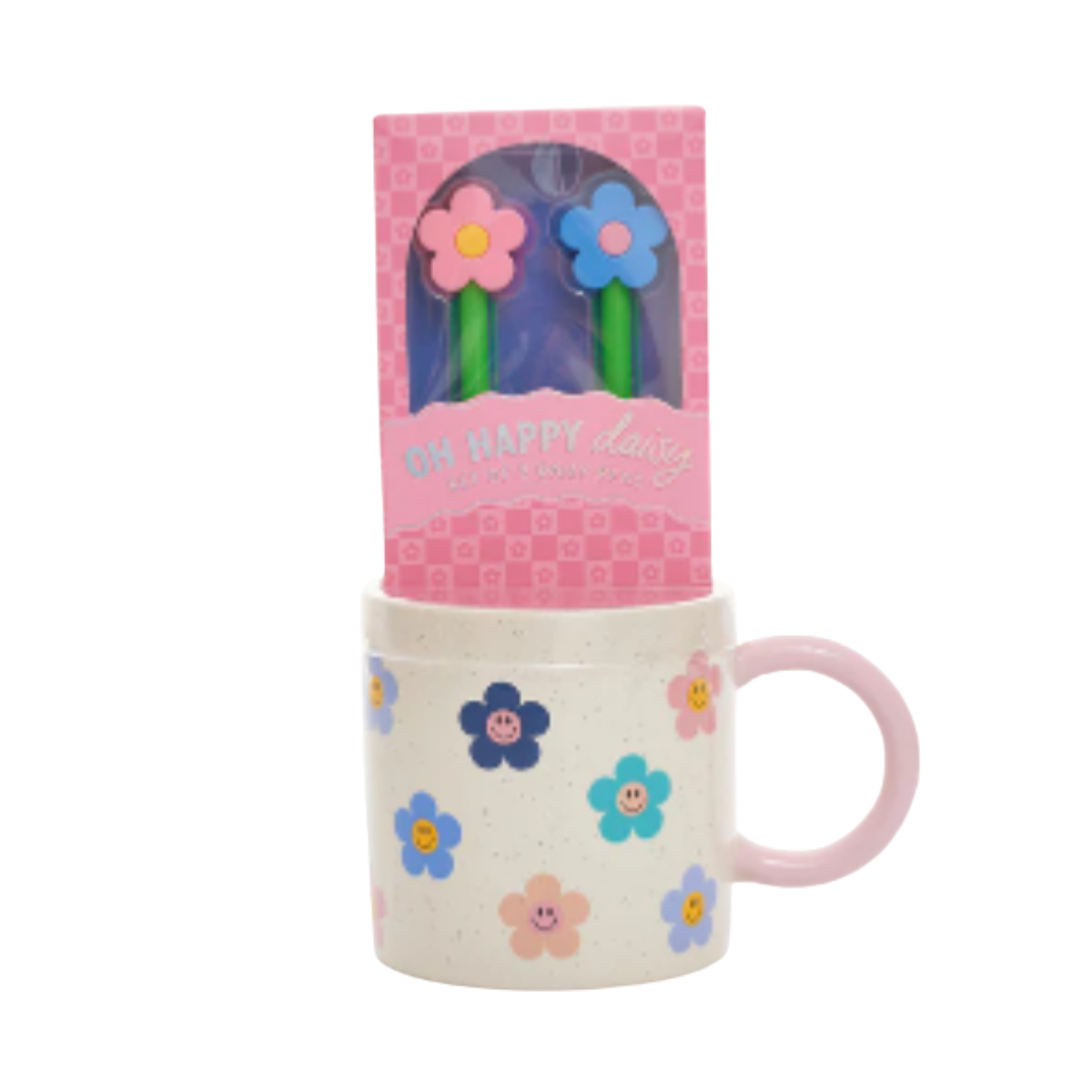 The artisanal ceramic mug feels substantial and warm in your hands—perfect for a generous pour of coffee or tea. Paired with the charming “Oh Happy Daisy” pens, it’s the ideal companion for writing out your “Sunday Morning” to-do list or capturing a spark of inspiration.