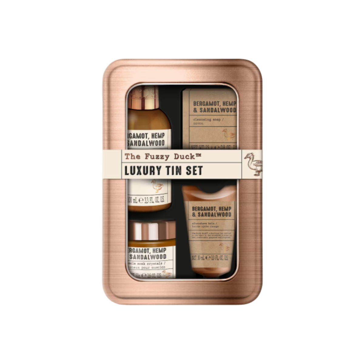 Upgrade his grooming routine with The Fuzzy Duck Bergamot, Hemp & Sandalwood Men’s Luxury Gold Grooming Tin Gift Set from Baylis & Harding. Presented in a stylish, reusable tin, this premium set includes a 100ml hair & body wash to cleanse and refresh, 50g muscle soak crystals to ease tension, a 30ml aftershave balm to soothe and hydrate skin, and a 25g soap for everyday freshness.